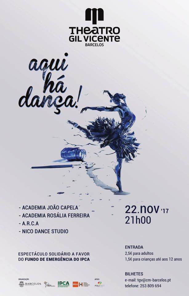 "Aqui há dança", dia 22, no Teatro Gil Vicente. Os bilhetes custam 2.5 euros, as crianças até aos 12 anos pagam 1.5 euros. Os interessados podem reservar os ingressos através do email