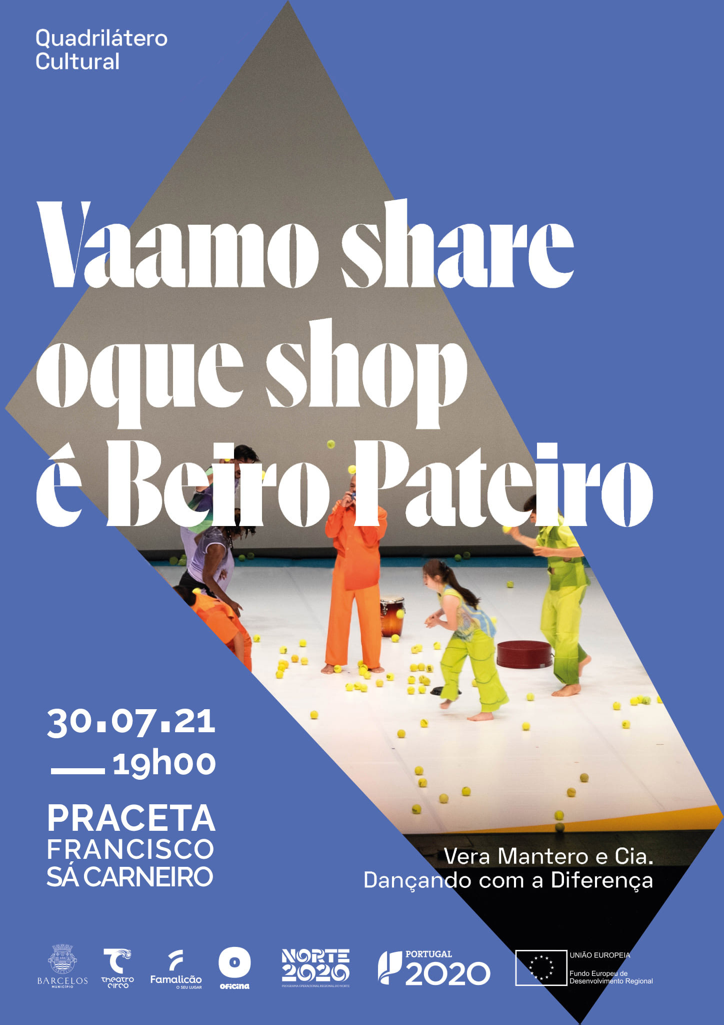 "Vaamo share oque shop é Beiro Pateiro", a peça da coreógrafa Vera Mantero, acompanhada pelo Grupo 'Dançando com a Diferença', é apresentada esta sexta-feira, 30 de julho, às 19h00, na Praceta Dr. Francisco Sá Carneiro, em Barcelos.