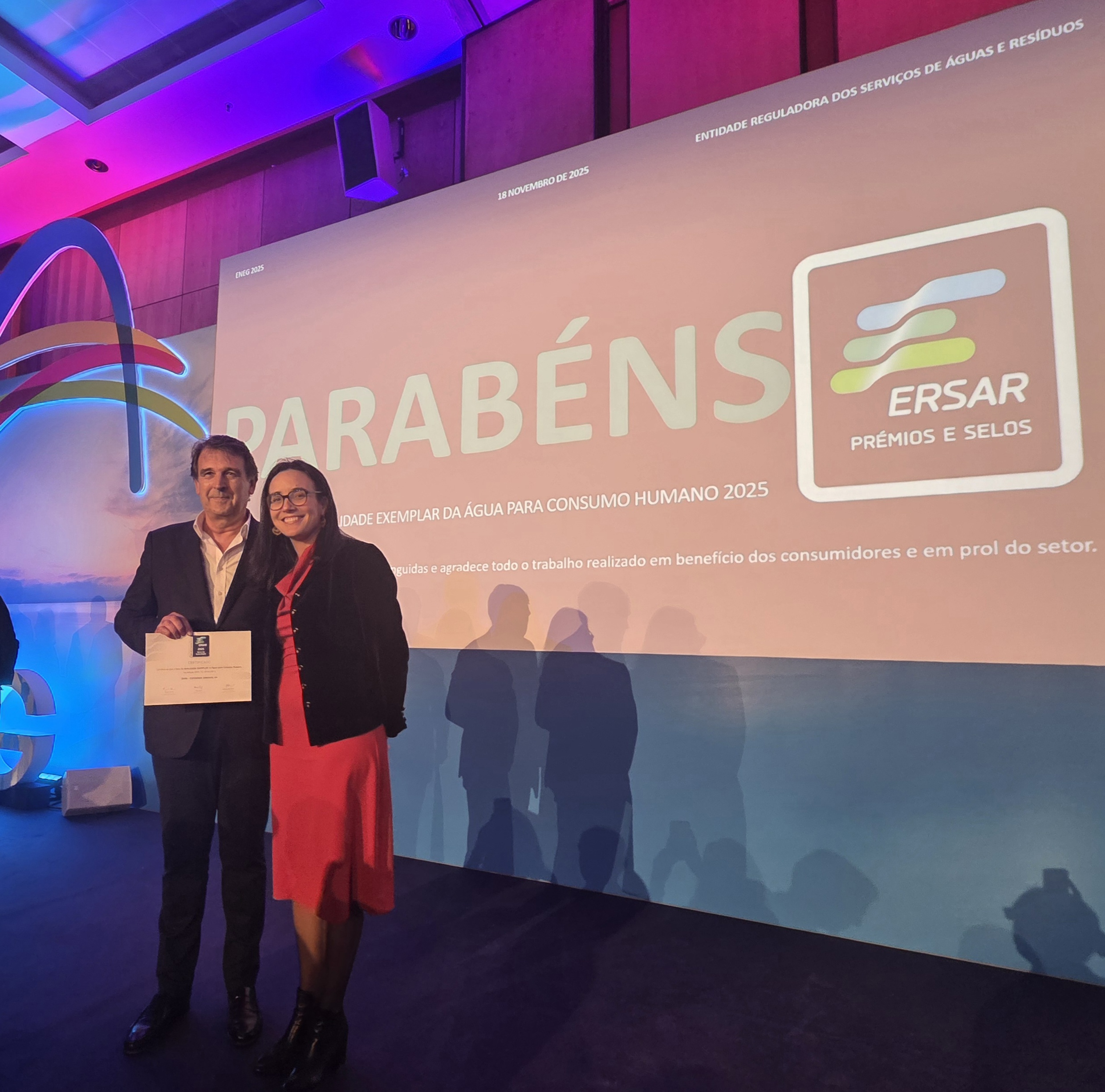 A entrega do galardão teve lugar no dia 18 de novembro, no Europarque, em Santa Maria da Feira, no âmbito do ENEG 2025 – Encontro Nacional de Entidades Gestoras de Água e Saneamento, promovido pela Associação Portuguesa de Distribuição e Drenagem de Águas (APDA). A distinção foi entregue pela Presidente do Conselho de Administração da ERSAR, Vera Eiró, ao Presidente do Conselho de Administração da Esposende Ambiente, Paulo Marques, na presença do Senhor Secretário de Estado do Ambiente, João Manuel Esteves.