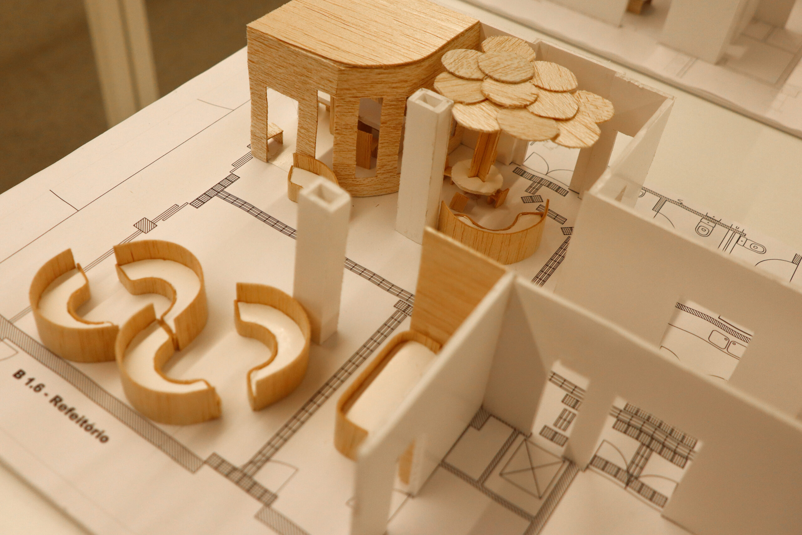 As maquetes foram construídas pelos estudantes do 2º ano da licenciatura em Design Industrial do IPCA, no âmbito da Unidade Curricular (UC) de Ergonomia e Antropometria. Como explicou Demétrio Matos, professor da UC: "As maquetes dão uma perspetiva tridimensional da dimensão do espaço, sendo mais fácil para visualizar as ideias propostas".