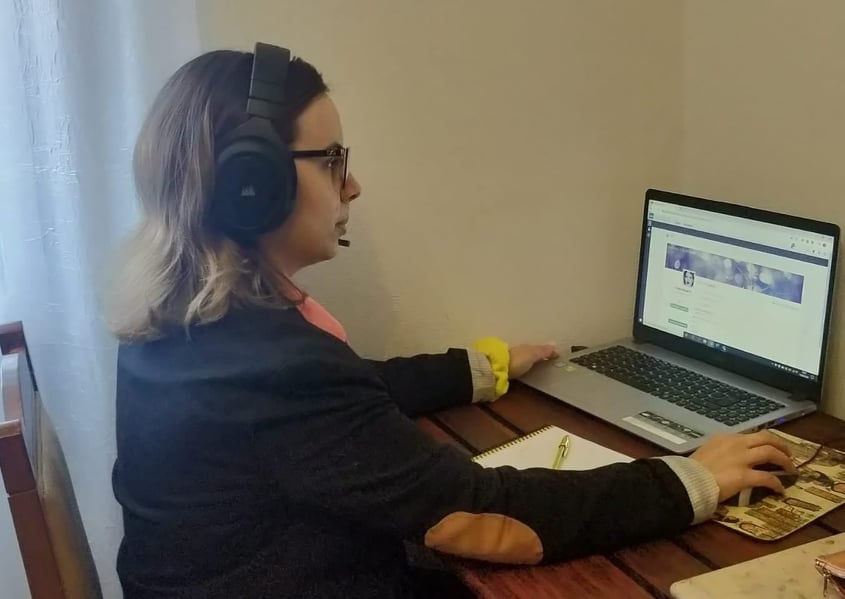 "Atendi um senhor com 81 anos, de Lisboa, que já tinha algum conhecimento relativo à utilização da internet pois já utilizava o e-mail", começa por referir a voluntária e estudante de Solicitadoria, Susana Coelho (representada na fotografia). "O senhor queria mandar o ficheiro word do Somos Digitais pelo whatsapp para os amigos e algumas fotografias dos seus dias de quarentena. Ligou mesmo do telefone fixo para ter o telemóvel livre para receber a explicação", adianta a voluntária que tem gostado da experiência de ajudar o próximo.