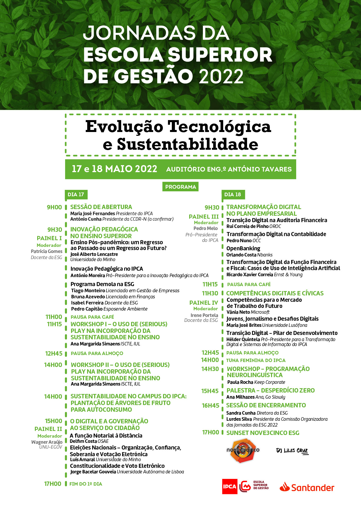 Estas jornadas decorrem no Auditório António Tavares, no Campus do IPCA em Barcelos, envolvendo diversas intervenções, workshops e atividades relacionadas com a temática da sustentabilidade e da evolução tecnológica e contando com a participação de diferentes profissionais, que partilharão as suas distintas perspetivas e experiências nestas matérias.