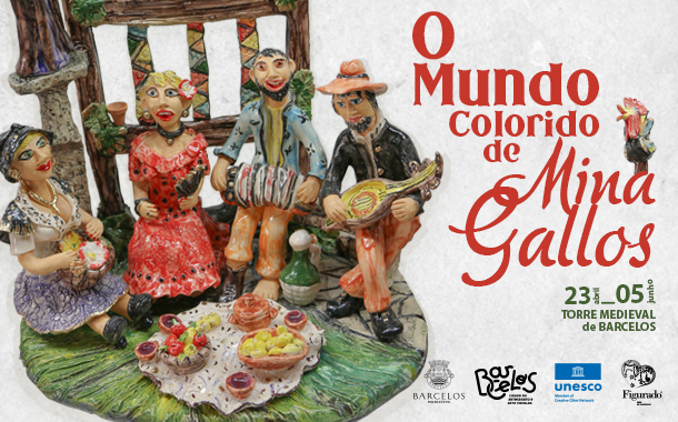 Abre ao público, sábado, (23 de abril), pelas 11h00, na Torre Medieval de Barcelos, a exposição "O mundo colorido de Mina Gallos". A mostra apresenta uma vasta coleção de peças que se diferenciam pela cor e alegria, criatividade e imaginação. As peças ostentam a etiqueta de Figurado de Barcelos certificado, conferindo-lhe uma mais-valia que garante a qualidade e autenticidade.
