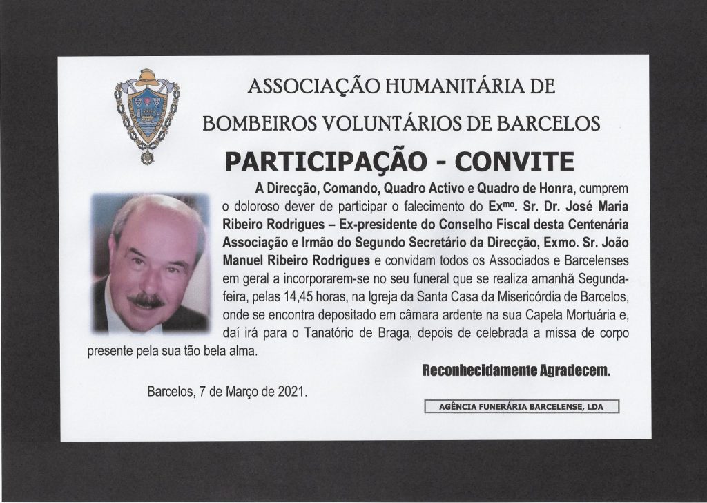 A Cávado fm envia sentidas condolências à família e amigos do Dr José Maria Rodrigues.
