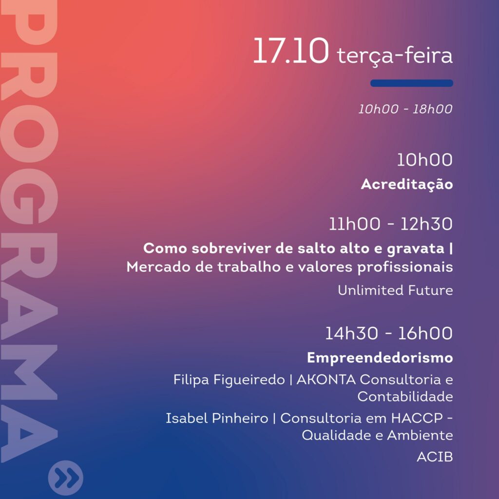 Já, na terça-feira, a programação inclui ações que permitem aos participantes ficarem a conhecer diversas áreas de negócio, empresas, projetos e oportunidades no mercado de trabalho.