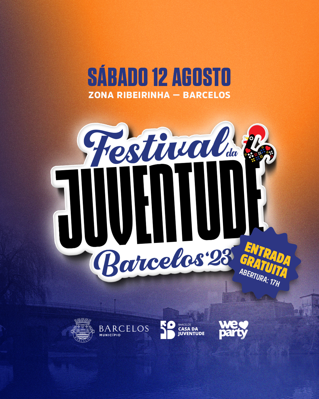 Depois do enorme sucesso do ano passado, está de volta o Festival da Juventude de Barcelos 2023, um evento que junta música, animação, desportos radicais e gastronomia, e que promete lotar a Frente Ribeirinha do Cávado, na cidade de Barcelos. Coincidindo com a celebração do Dia Internacional da Juventude, o Município de Barcelos, através da Casa da Juventude, preparou um diversificado programa com particular destaque para as atuações musicais de Dillaz, Bispo, Força Suprema e os barcelenses Wave, vencedores do Projeto Arte em Movimento. Noite fora, a animação aumenta com os Djs: Pette, Drrey, Fábio Vasquez, Lilas, Los Bravos, e MC Mano. Este ano, o Festival conta também com a irreverência do humorista barcelense João Dantas.