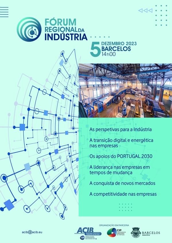 O Fórum Regional da Industria organizado pela ACIB-Associação comercial e Industrial de Barcelos em parceria com a CMB-Câmara Municipal de Barcelos e a CIP – Confederação Empresarial de Portugal, realiza-se no dia 5 de dezembro no Auditório da CMB e estima-se a presença de centenas de empresários da região e dos diferentes setores industriais.