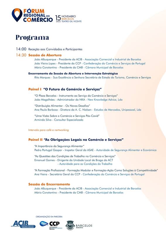Estão confirmadas as presenças da Senhora Secretária de Estado do Turismo, Comércio e Serviços, Rita Marques, e do Presidente da CCP, João Vieira Lopes.