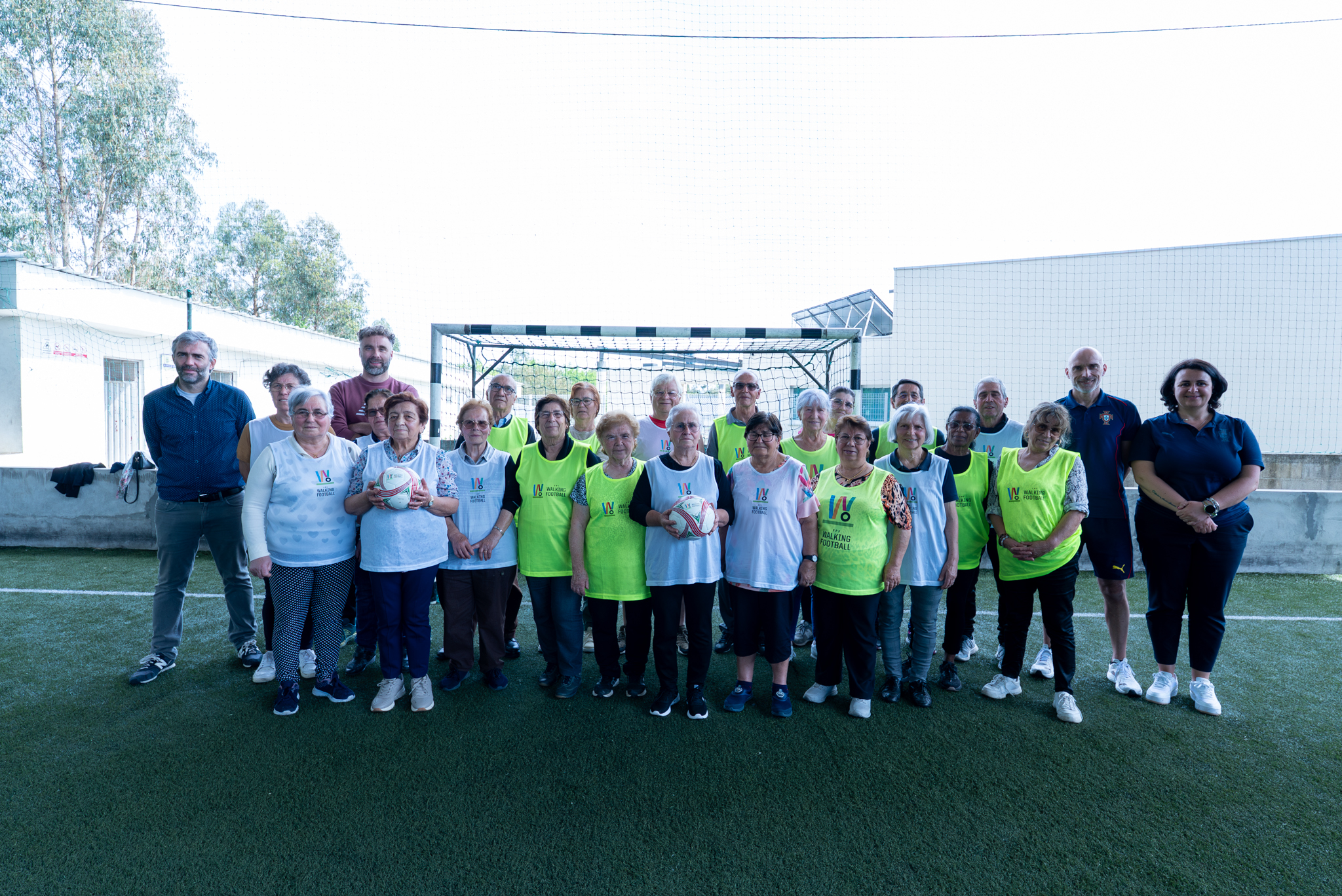 A sessão, realizada no Campo de Jogos do Alívio, foi orientada pelo professor André Coelho, Responsável Técnico Nacional de Walking Football. Marcaram também presença a gestora nacional do projeto, Rute Silva, e Miguel Silva, gestor distrital.