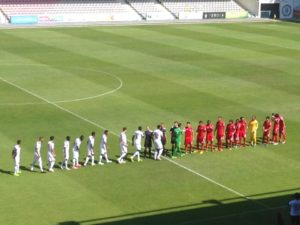 Os gilistas entraram melhor e tiveram um punhado de ocasiões flagrantes para abrir o ativo, entre as quais duas bolas aos ferros por Rui Miguel e Jonathan. Contra a corrente, seria a formação de Almada a ir para o intervalo a vencer com golo de Daniel Almeida aos 43 minutos.