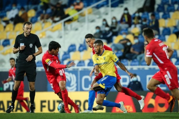 Os canarinhos estiveram por duas vezes em vantagem, com golos de Rui Fonte (11 minutos) e André Franco (45+2, de grande penalidade), mas os visitantes empataram por Samuel Lino (42) e Fran Navarro (50).