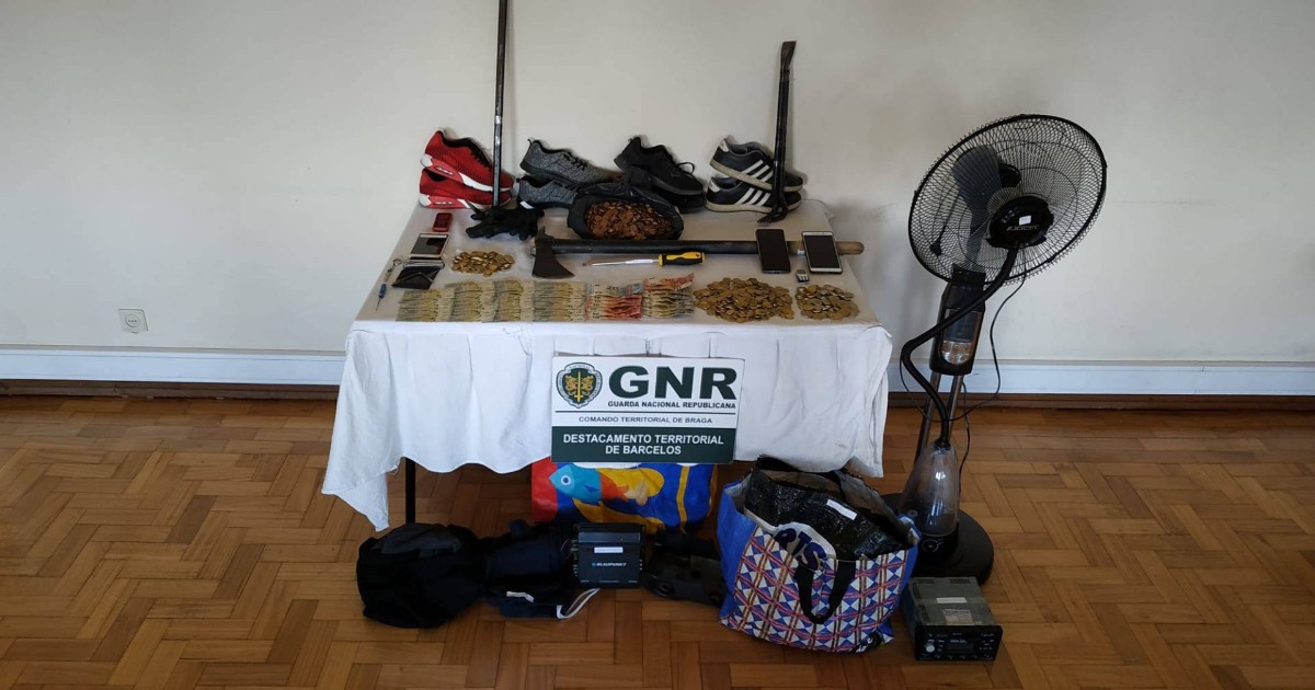 A GNR realizou quatro buscas domiciliárias e quatro buscas em veículos, que resultaram na apreensão de tabaco, telemóveis, um veículo e 694 euros, além de material furtado e de pés-de-cabra, luvas e alicates alegadamente usados para consumar os crimes.