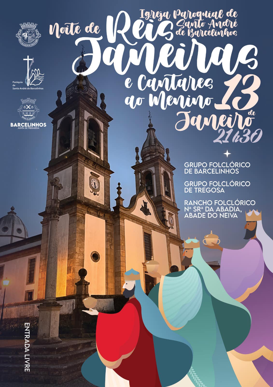 O Grupo Folclórico de Barcelinhos, em Parceria com a Paróquia de Barcelinhos, a Junta de Freguesia de Barcelinhos e a SOPRO, organiza, no próximo Sábado, uma Noite de Reis, Janeiras e Cantares ao Menino, na Igreja de Barcelinhos, no próximo Sábado, 13 de Janeiro de 2024, pelas 21h30.