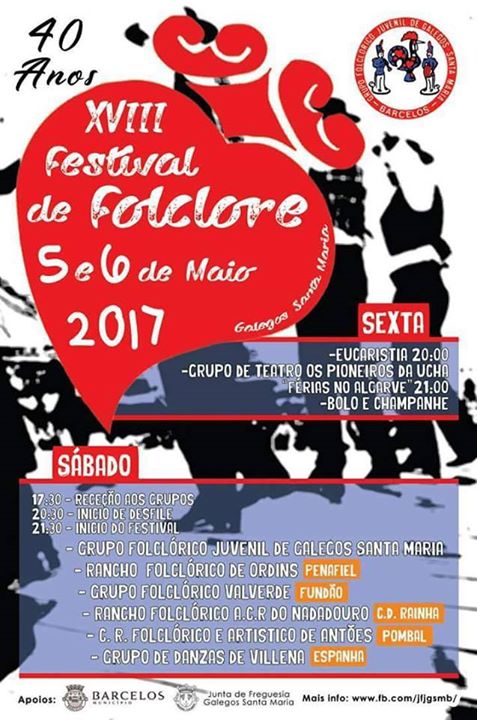 O Grupo Folclórico Juvenil de Galegos Santa Maria celebra entre esta sexta-feira e sábado quarenta anos e o ponto alto das comemorações será a 18.ª edição do Festival de Folclore organizado pelo conjunto.