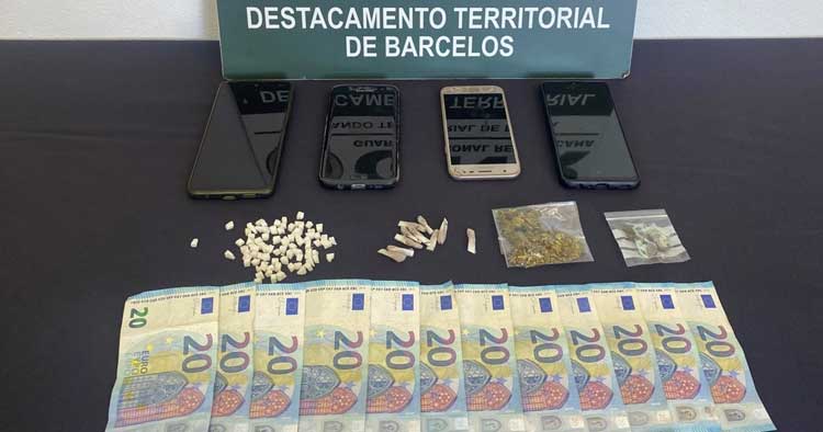 Os militares efetuaram uma busca domiciliária, das quais resultou a apreensão de 50 doses de cocaína, 20 doses de heroína, 20 doses de canábis, quatro telemóveis e 240 euros em numerário.