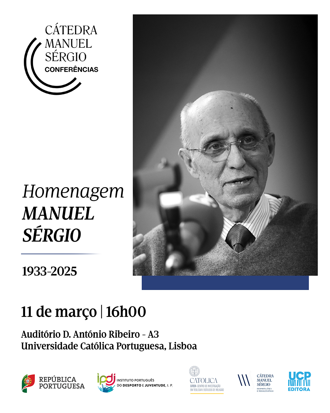 No próximo dia 11 de março de 2025, a Universidade Católica Portuguesa (UCP) acolhe um evento especial para celebrar a vida e o legado de Manuel Sérgio, o mais influente filósofo do desporto em Portugal. O filósofo que não desistiu de pensar o humanismo desportivo será homenageado numa sessão que conta com a presença do Secretário de Estado do Desporto, Pedro Dias, e da Reitora da UCP, Isabel Capeloa Gil.