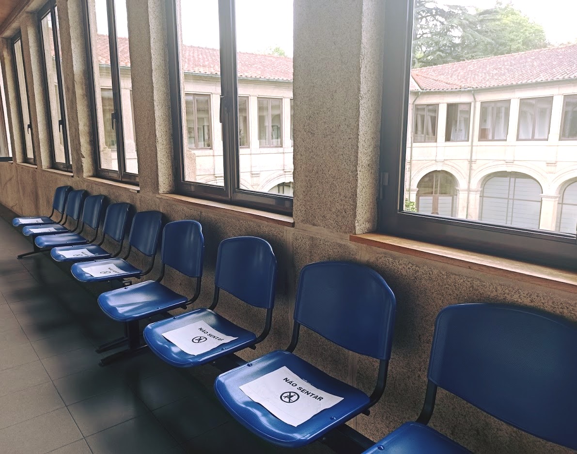 As salas de espera contam, agora, com a existência de cadeiras vazias, para criar espaçamento entre doentes, ausência de acompanhantes, só sendo permitidos os que acompanham crianças ou doentes em situação muito frágil, com mobilidade reduzida ou dificuldade cognitiva ou de comunicação.