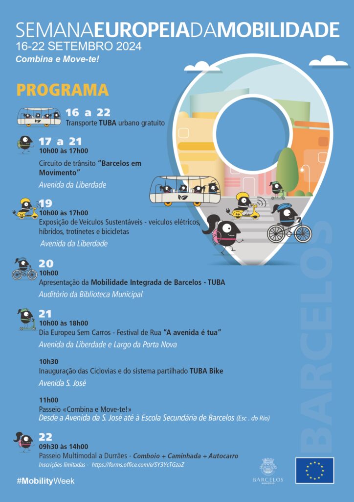 Para encerrar a Semana Europeia do Desporto, realiza-se no dia 22 (domingo), das 9h30 às 14h00, o Passeio Multimodal a Durrães, que consiste na utilização de comboio, autocarro e caminhada. Inicia na Estação Ferroviária de Barcelos, de comboio até Barroselas, segue-se de autocarro até Balugães, e culmina com uma caminhada pelos pontos mais emblemáticos da freguesia. O regresso a Barcelos faz-se de autocarro, com chegada prevista para as 14h00. A concentração para esta ação acontece às 10h00 na Estação Ferroviária de Barcelos. A participação é gratuita, mas carece de inscrição obrigatória através do link: https://forms.office.com/e/SY3YcTGzaZ
