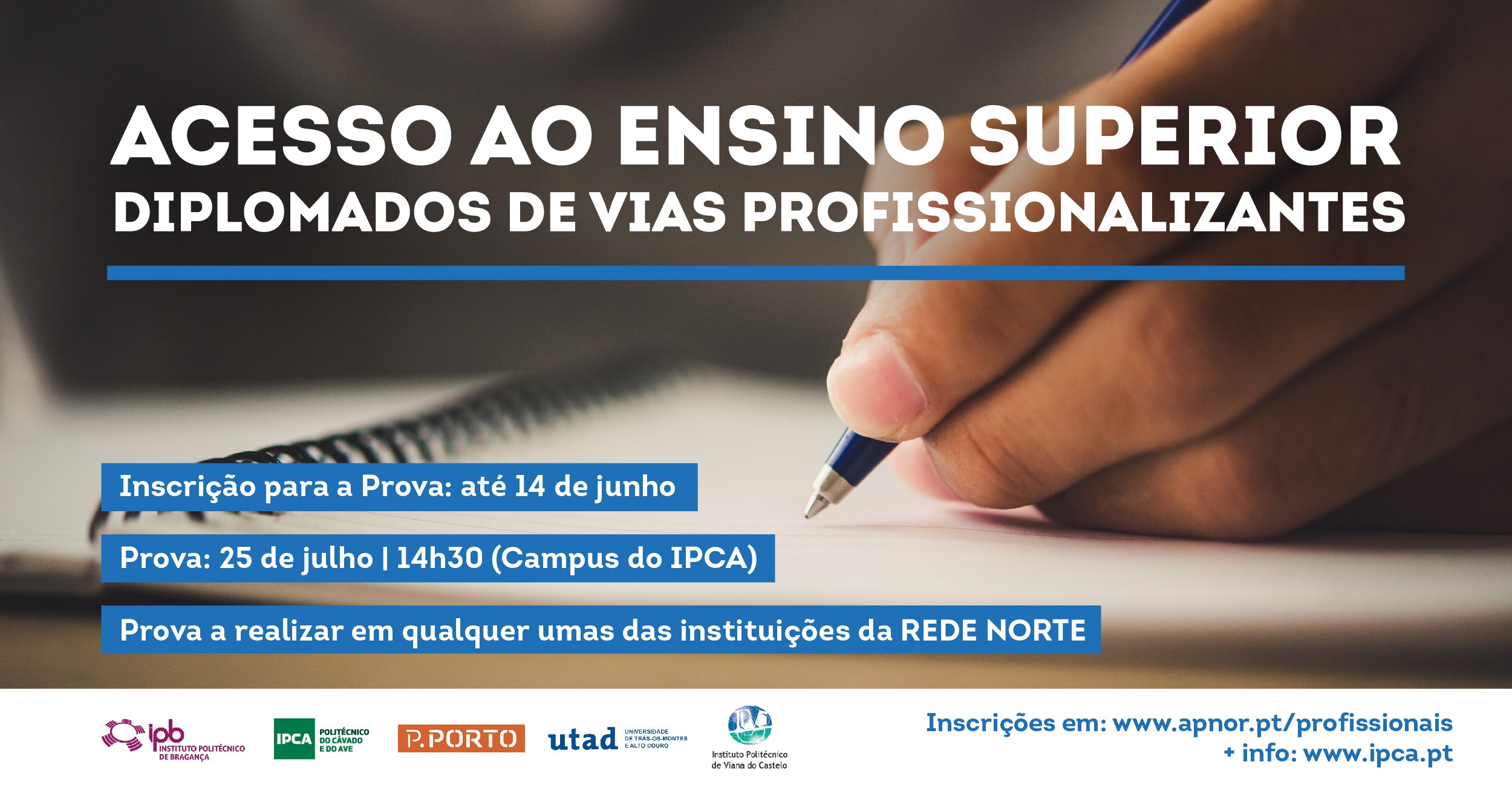O prazo para a inscrição decorre até ao dia 14 de junho e a prova realiza-se no dia 25 de julho, pelas 14h30. Os candidatos podem realizar a prova de avaliação em qualquer umas das instituições da REDE Norte constituída pelo IPCA, pelos politécnicos de Bragança, do Porto e de Viana do Castelo, e pela UTAD, que conjuntamente organizaram a prova de avaliação de conhecimentos que dão acesso aos seus cursos de licenciatura.