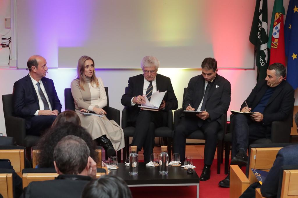 Fernando Alexandre, professor de Economia da Universidade do Minho e coordenador da elaboração da Estratégia para o Desenvolvimento do Concelho de Barcelos, moderou a conversa/debate que teve como convidados Filipe Chaves, docente do IPCA, Mariana Carvalho, responsável pelo pelouro da Educação do município barcelense, José Vilas Boas Ferreira, CEO do grupo empresarial Valérius, e Jorge Cruz, presidente da EMEC – Empresa de Educação e Cultura, entidade responsável pela ETG - Escola de Tecnologia e Gestão de Barcelos.