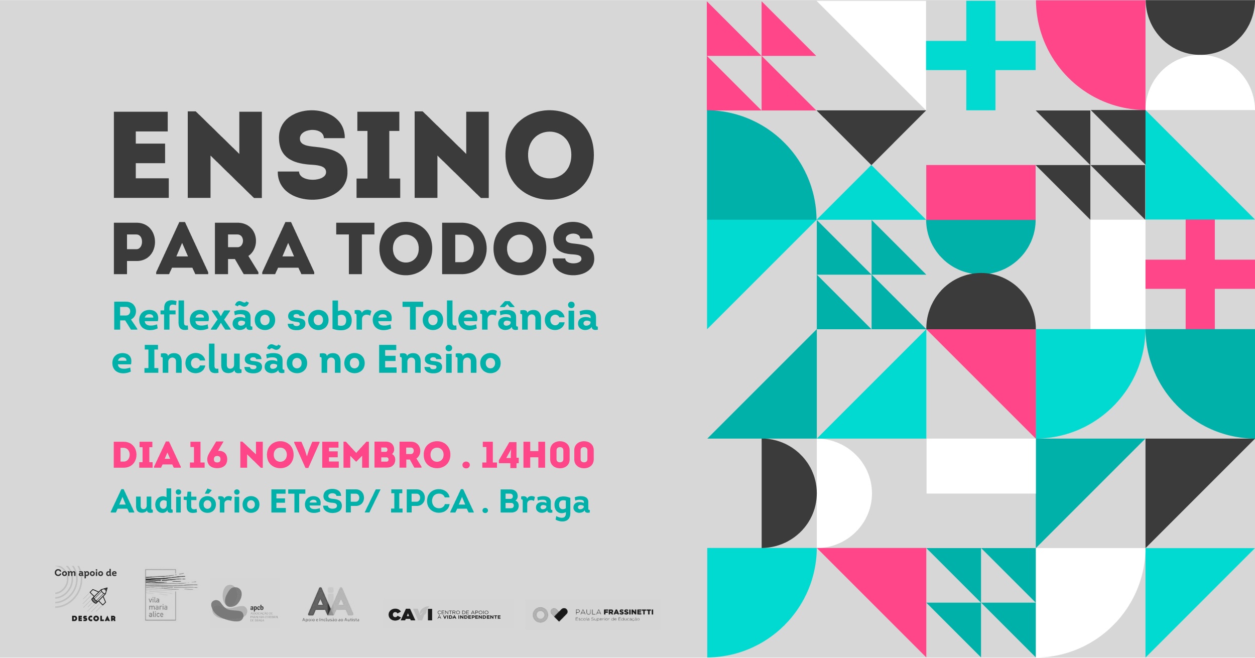No âmbito do plano estratégico IPCA para a promoção de incorporação de uma cultura de tolerância e inclusão baseada no respeito pelo ser humano e na igualdade de oportunidades em todas as suas áreas de atuação, o seminário “Ensino para todos” terá como principal objetivo propor uma reflexão sobre modelos educativos que promovam medidas de inclusão e tolerância para toda a comunidade académica.