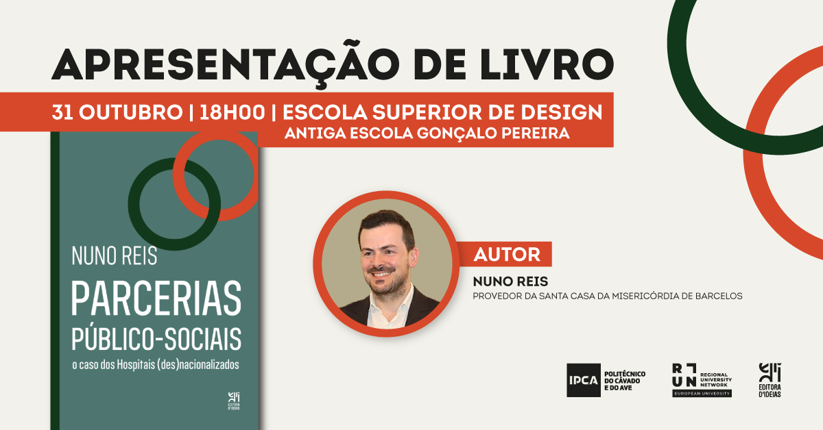 O Politécnico do Cávado e do Ave (IPCA) recebe, no próximo dia 31 de outubro, pelas 18h00, a apresentação do livro "Parcerias Público-Sociais: o caso dos Hospitais (des)nacionalizados", da autoria de Nuno Reis, Provedor da Santa Casa da Misericórdia de Barcelos.