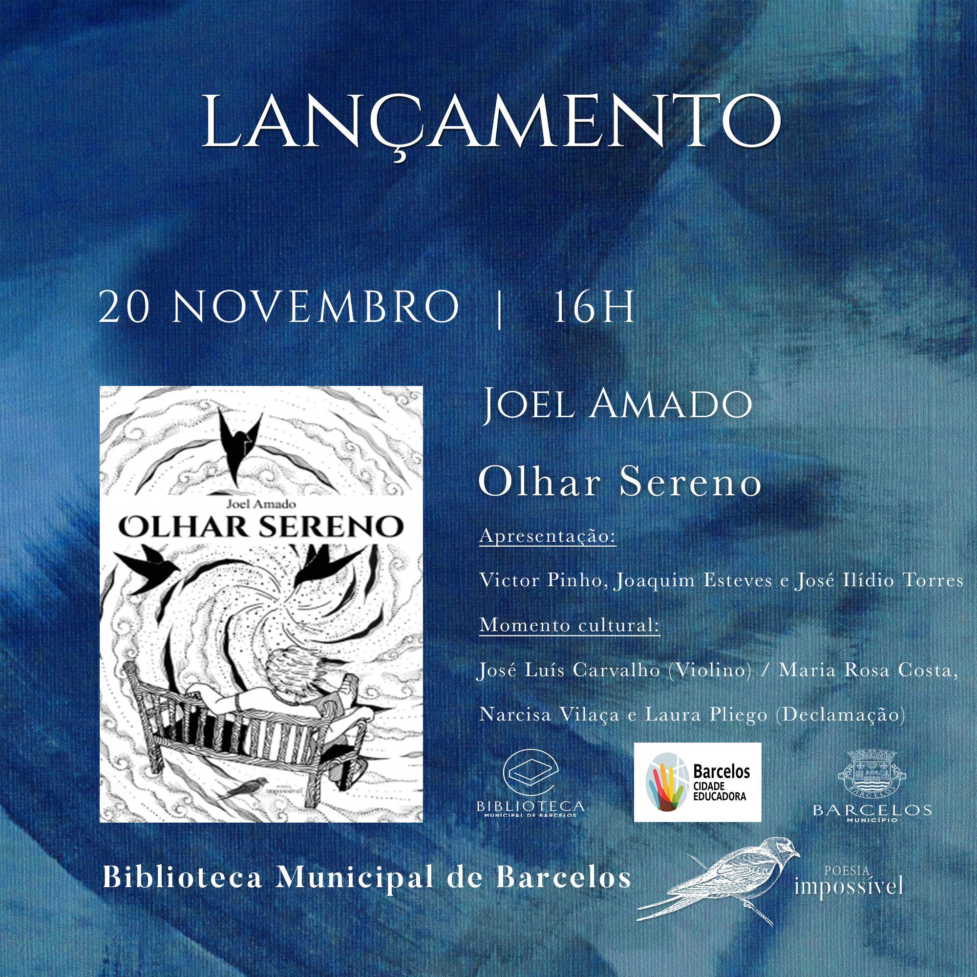 O escritor barcelense Joel Amado tem encontro marcado na Biblioteca Municipal de Barcelos para o próximo sábado, dia 20, pelas 16h00, para a sessão de lançamento do seu mais recente livro "Olhar Sereno".