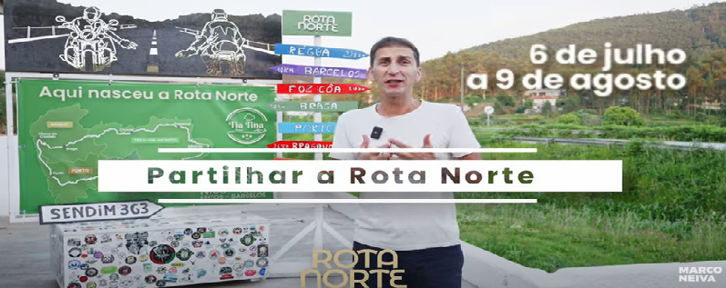 Após o lançamento do guia de viagem da Rota Norte que já vendeu mais de 2500 unidades, Marco Neiva, mentor e promotor da Rota Norte, fará uma grande viagem de 35 dias de bicicleta elétrica. De 6 de julho a 9 de agosto atravessará os 35 municípios integrantes desta Rota Turística, numa iniciativa chamada Partilhar a Rota Norte.