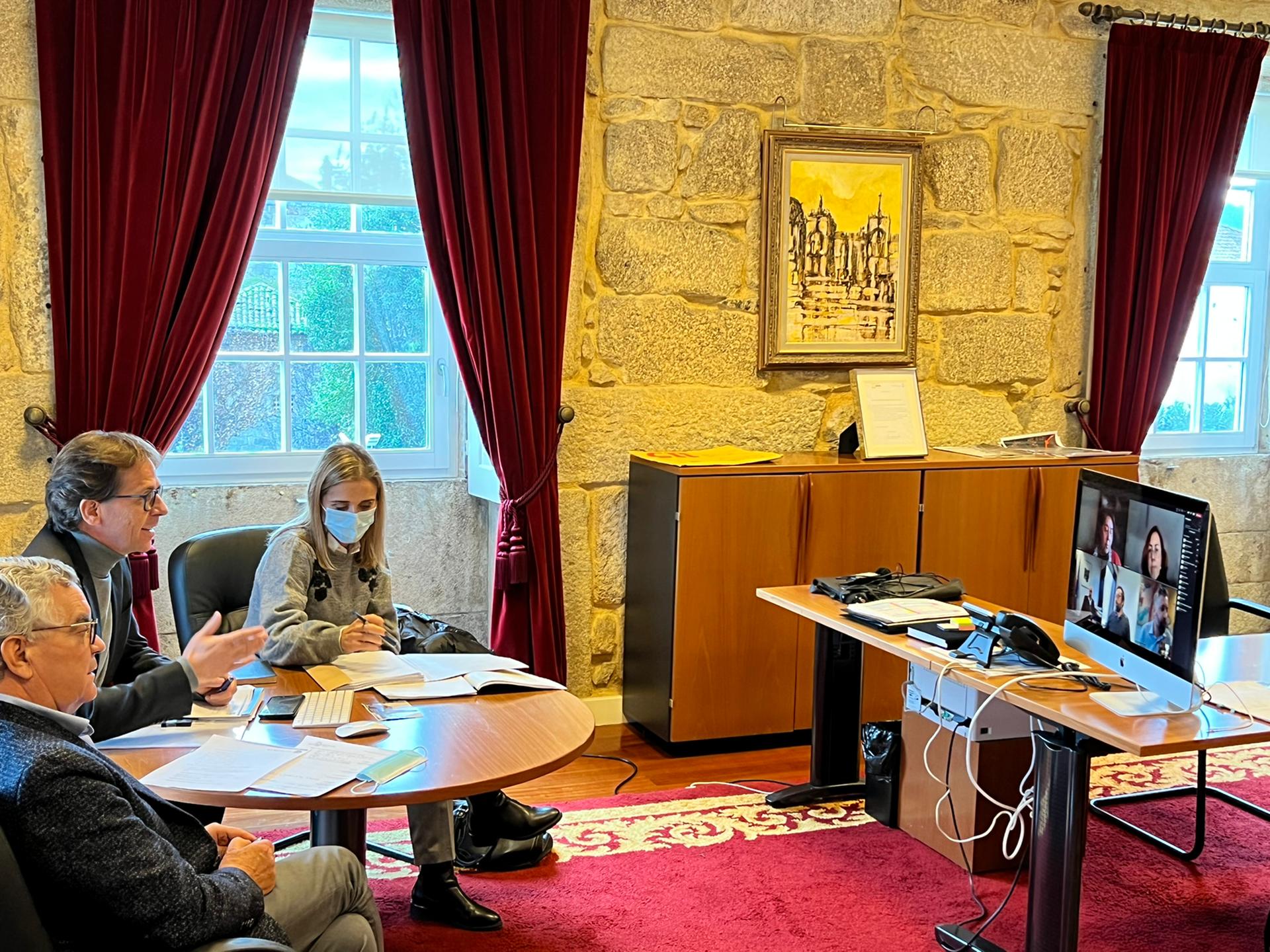 Mário Constantino, o vice-presidente, Domingos Pereira, e a vereadora Mariana Carvalho estiveram em reunião de trabalho (via videoconferência) para dar conta ao Ministro Pedro Nuno Santos de assuntos prementes para a população barcelense mas cuja resolução depende também da tutela governamental.