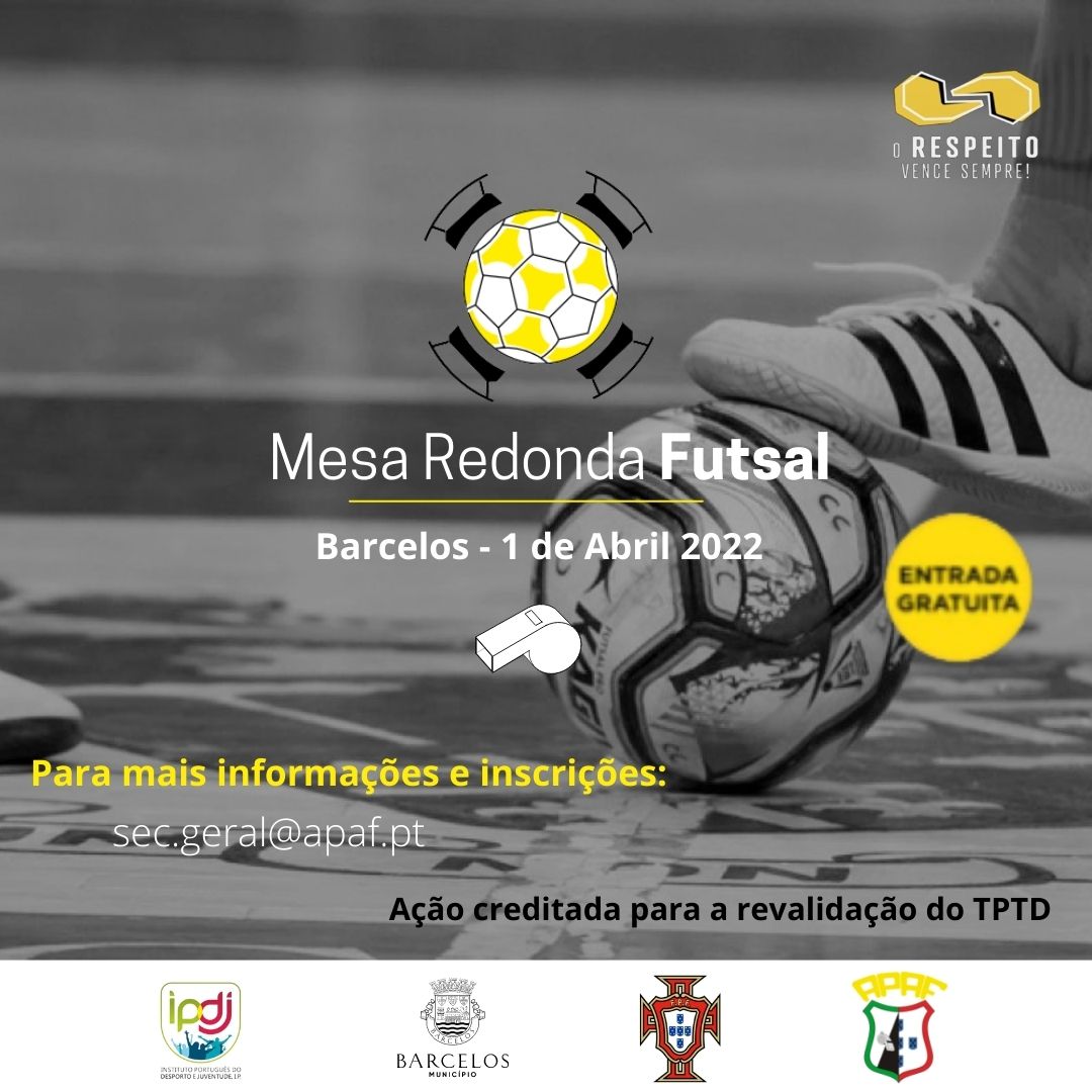 O Município de Barcelos acolhe no próximo dia 1 de abril, pelas 21h00, na Biblioteca Municipal, uma Mesa Redonda sobre as temáticas do futsal e da arbitragem. A iniciativa é da responsabilidade da Associação Portuguesa de Árbitros de Futebol (APAF) e visa ver discutidos, por um conjunto de figuras de relevo nacional ligadas à modalidade, diversos temas relativos ao Futsal.