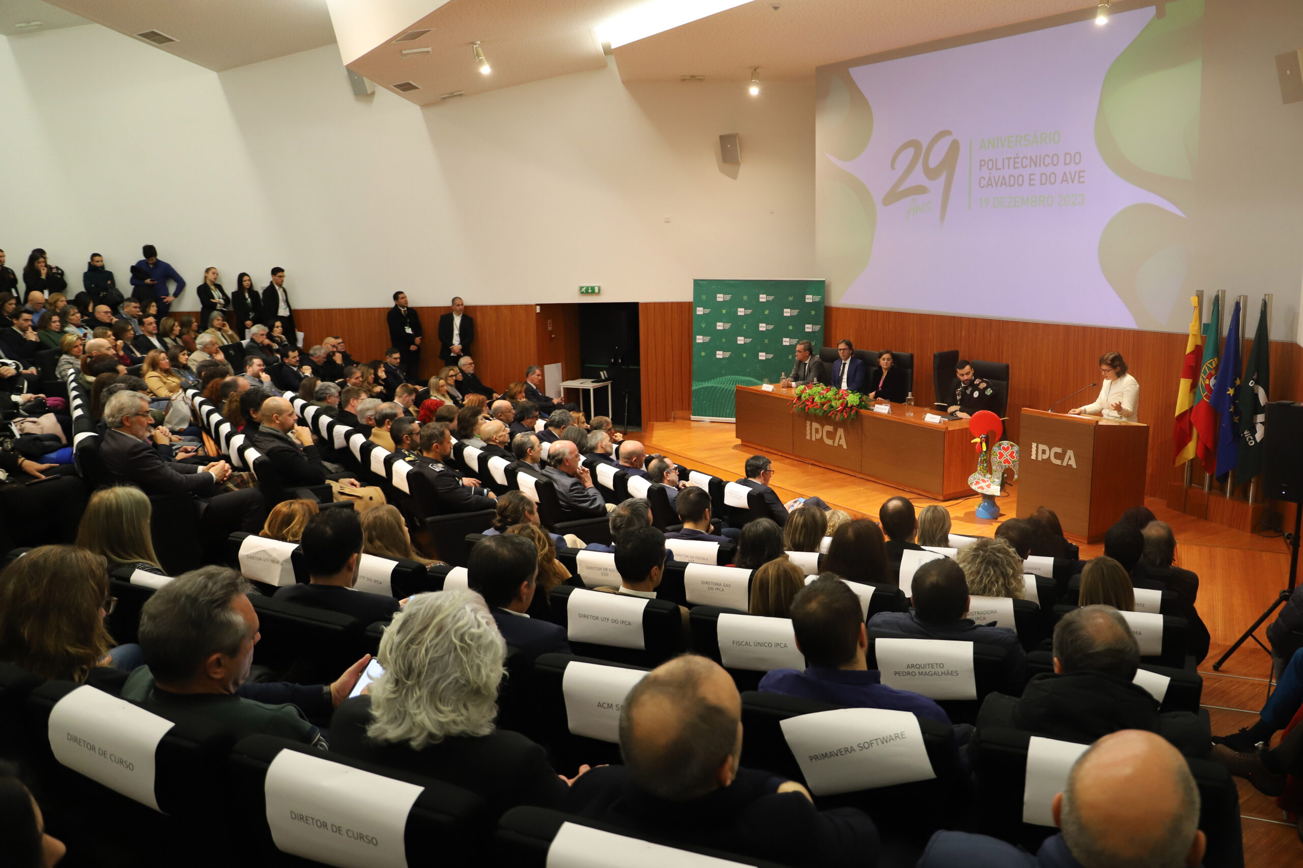 Maria José Fernandes prosseguiu, fazendo uma resenha deste último ano, durante o qual a instituição chegou aos 7200 estudantes, um crescimento de cerca de 8% face ao ano letivo transato. Ainda nas palavras da Presidente do IPCA: “2023 foi um ano histórico para o ensino superior politécnico, com a aprovação da lei que outorga às Instituições Politécnicas a lecionação de doutoramentos e a alteração da denominação para Universidades Politécnicas, o que se traduzirá em maior reconhecimento nacional e internacional”.