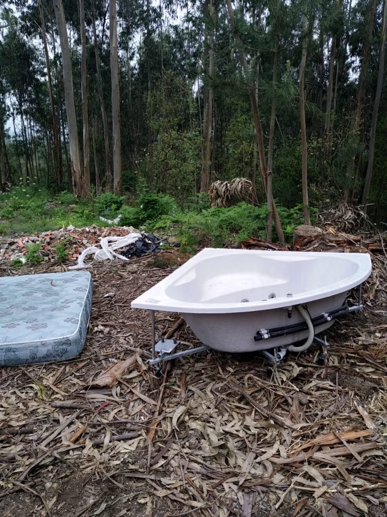 diverso lixo doméstico e resíduos sólidos (desde garrafas, sofás, pára-choques, colchões, entre