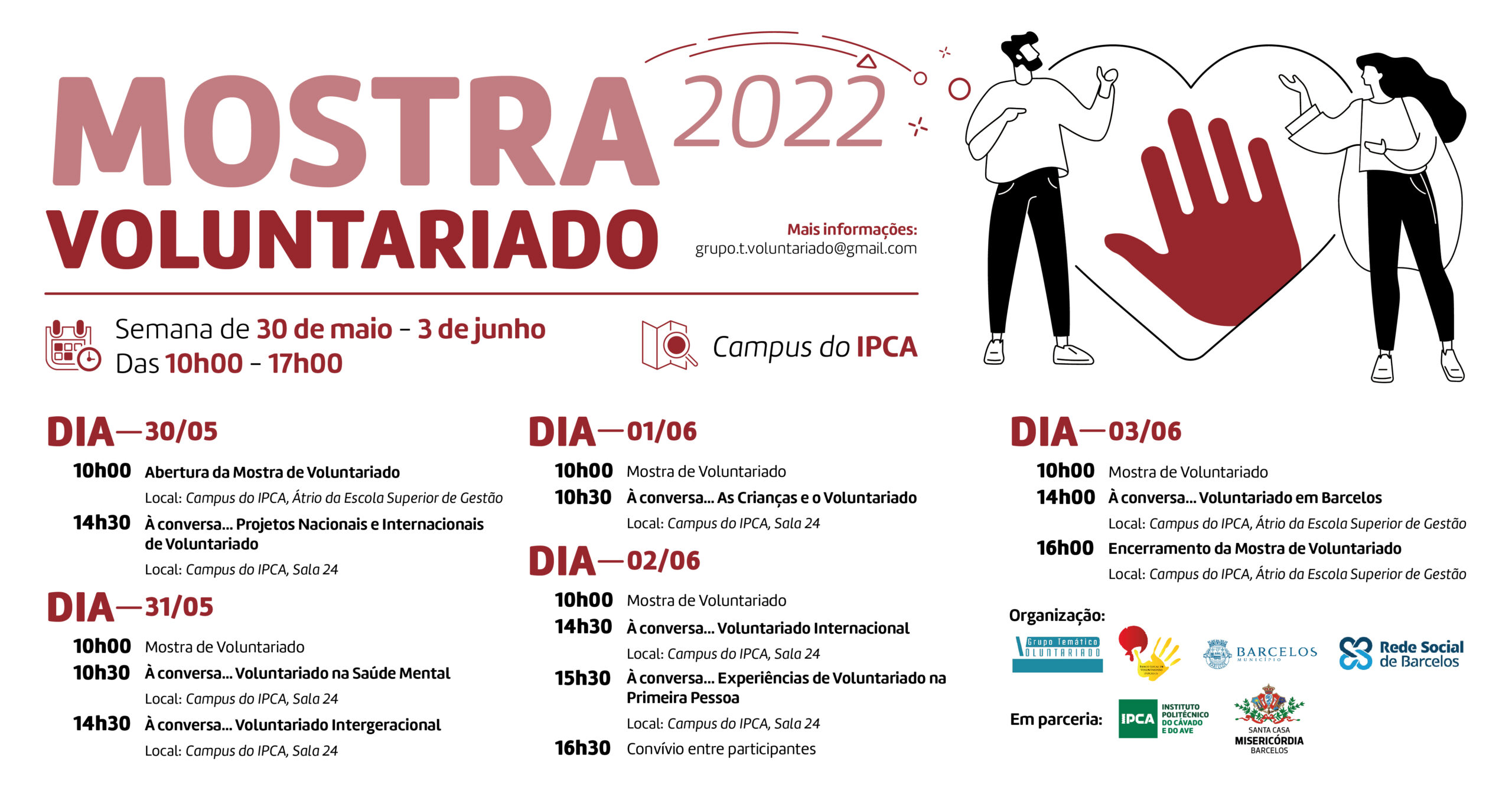 De 30 de maio a 3 de junho, realiza-se no Campus do IPCA a Mostra de Voluntariado 2022.