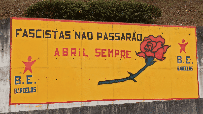 Em causa uma pintura, num muro da Central de Camionagem de Barcelos, com os dizeres "Fascistas não passarão, Abril sempre", assinada pelo BE local.