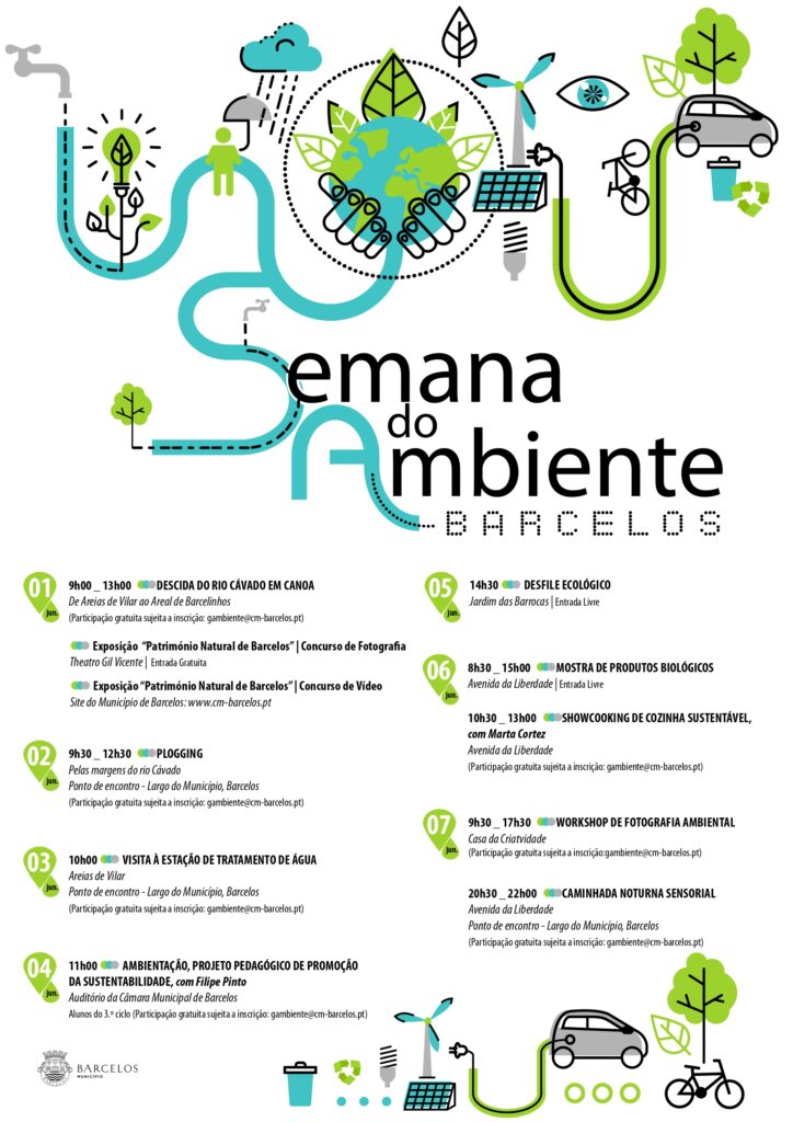 O Município de Barcelos assinala a Semana do Ambiente, promovendo um conjunto de atividades relacionadas com a natureza, entre 1 e 7 de junho. É uma semana dedicada em exclusivo à Natureza, visando dar a conhecer, através de uma vertente lúdica, as potencialidades do património ambiental concelhio. Todas as atividades da Semana do Ambiente carecem de inscrição obrigatória, através do e-mail gambiente@cm- barcelos.pt.