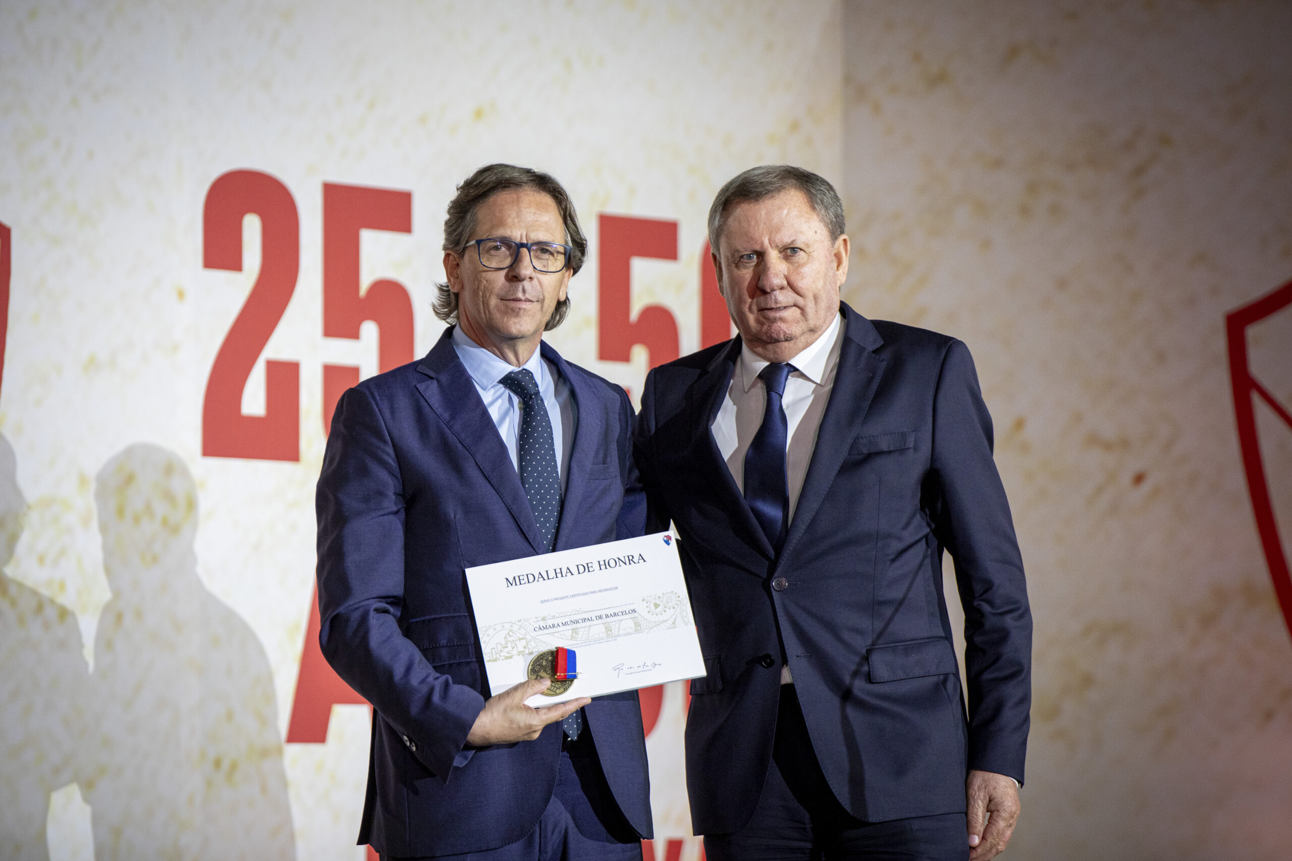 A cerimónia incluiu ainda a entrega de emblemas comemorativos aos associados com 25 e 50 anos de filiação, assim como homenagens a personalidades e instituições que têm contribuído para o percurso e os valores do Gil Vicente Futebol Clube.