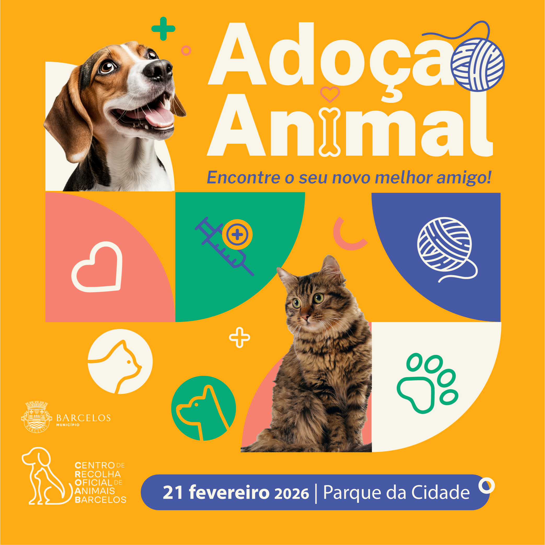 O Município de Barcelos promove no próximo sábado, 21 de fevereiro, entre as 15h00 e as 18h00, uma Feira de Adoção Animal, no Parque da Cidade.