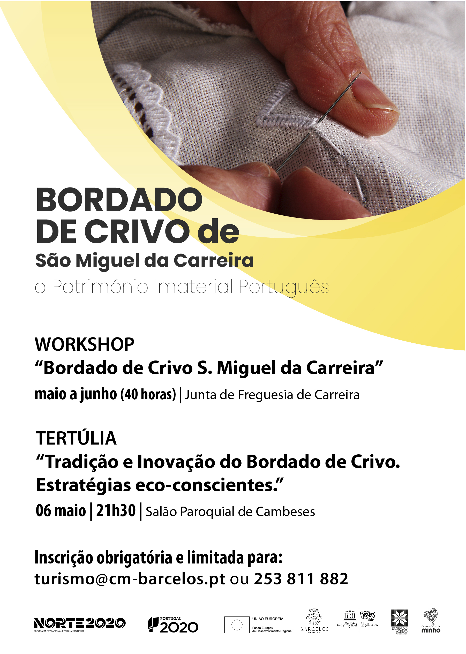 Com o intuito de preservar as atividades tradicionais do Bordado de Crivo, o Município de Barcelos, nos meses de maio a julho de 2022, promove um workshop de Bordado de Crivo de São Miguel da Carreira, com o objetivo de transmitir saberes e técnicas para a elaboração deste bordado, uma arte tradicional enraizada na parte sudeste do concelho de Barcelos.