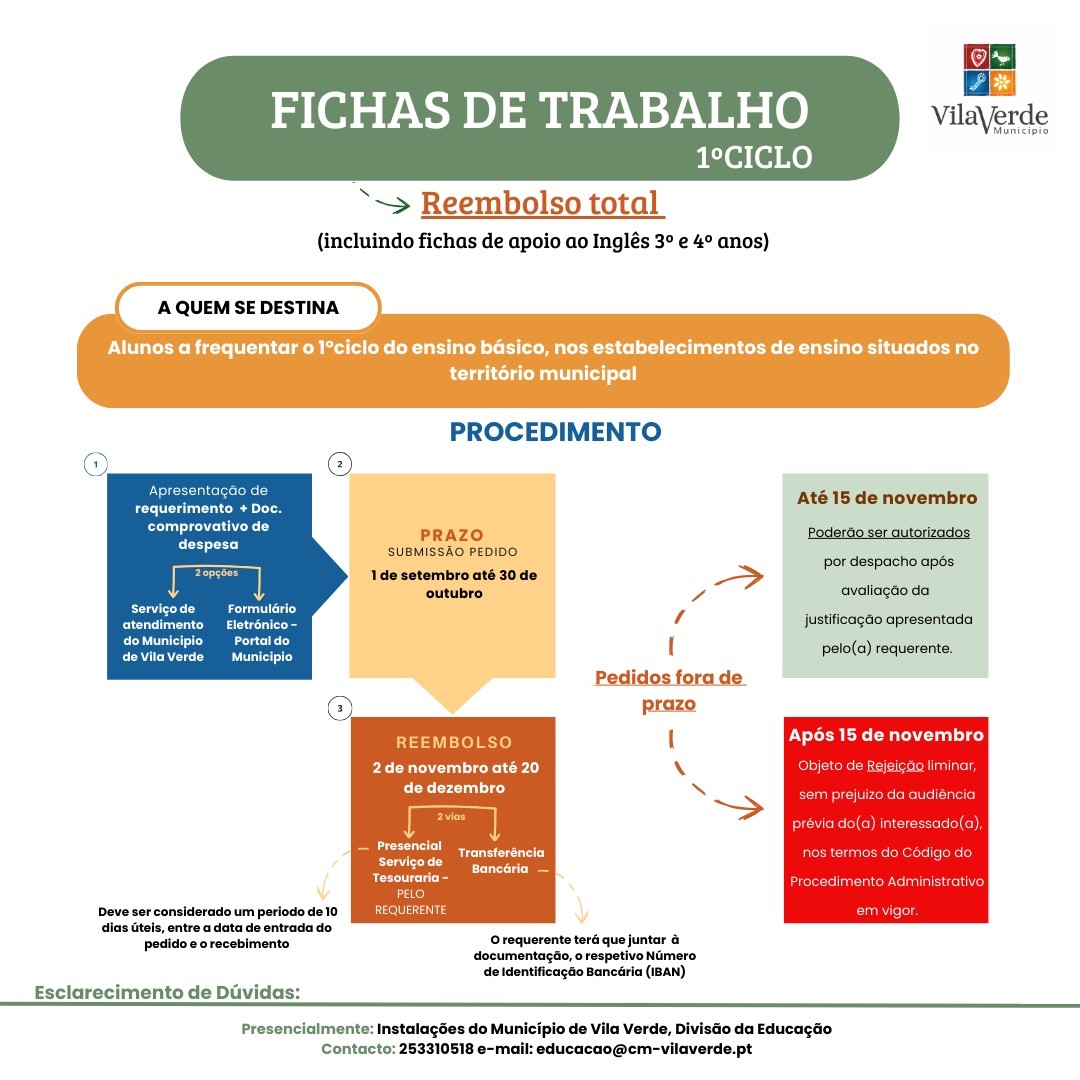 A Câmara Municipal de Vila Verde vai assumir, integralmente, os custos das famílias com a compra dos livros de fichas de trabalho complementares aos manuais escolares para todos os alunos do primeiro ciclo do ensino básico no concelho. O reembolso das despesas deve ser solicitado através dos serviços online, a partir da próxima segunda-feira.