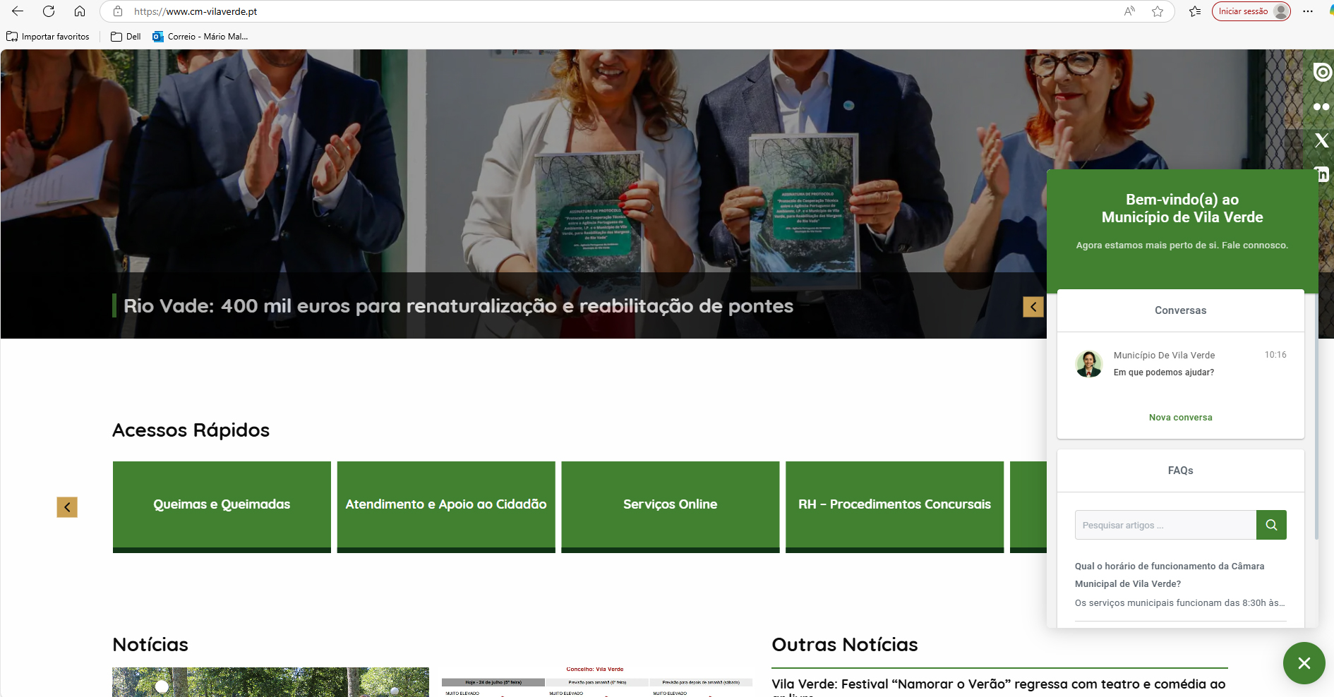 O Município de Vila Verde passou a disponibilizar uma nova ferramenta digital no site institucional, para reforçar a proximidade e o contacto das pessoas com os serviços municipais.
