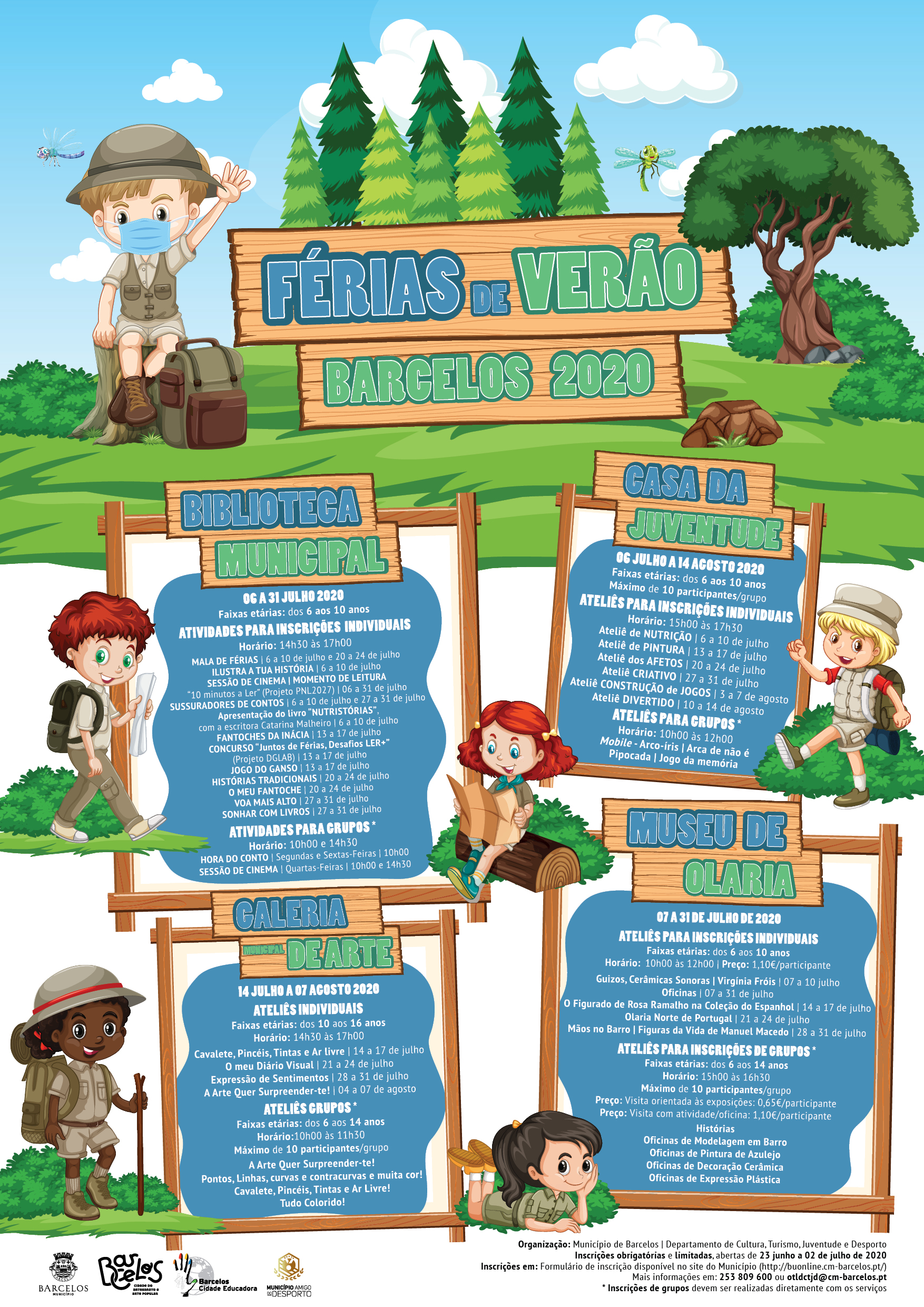 As inscrições para atividades em grupos são efetuadas diretamente com os serviços. Mais informações em agenda.barcelos.pt.