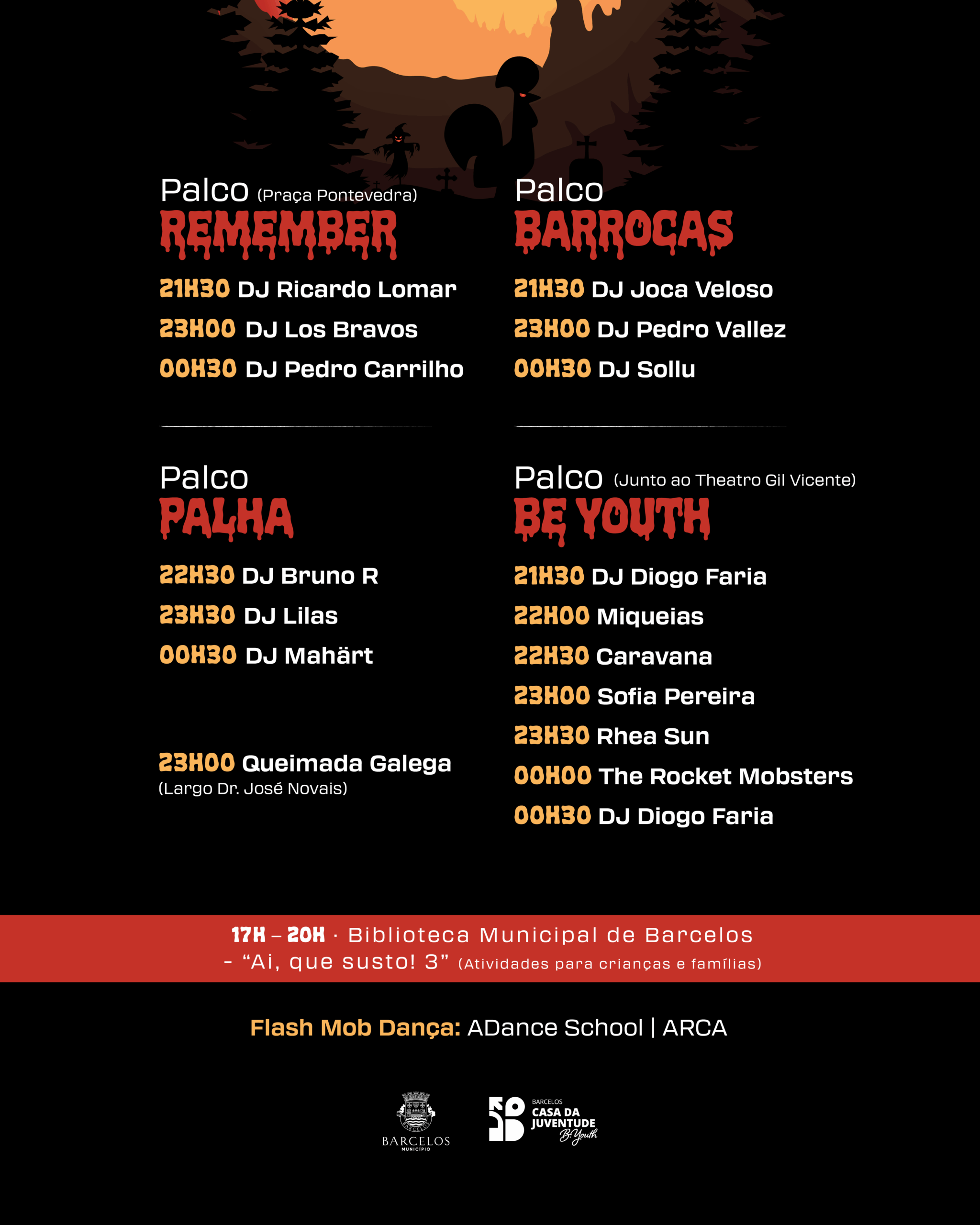 Após o sucesso das edições anteriores, a Noite Preta de Halloween está de volta ao Centro Histórico de Barcelos. Assim, ao anoitecer de sexta-feira, dia 31 de outubro, Barcelos junta ao ambiente de terror muita música e animação.