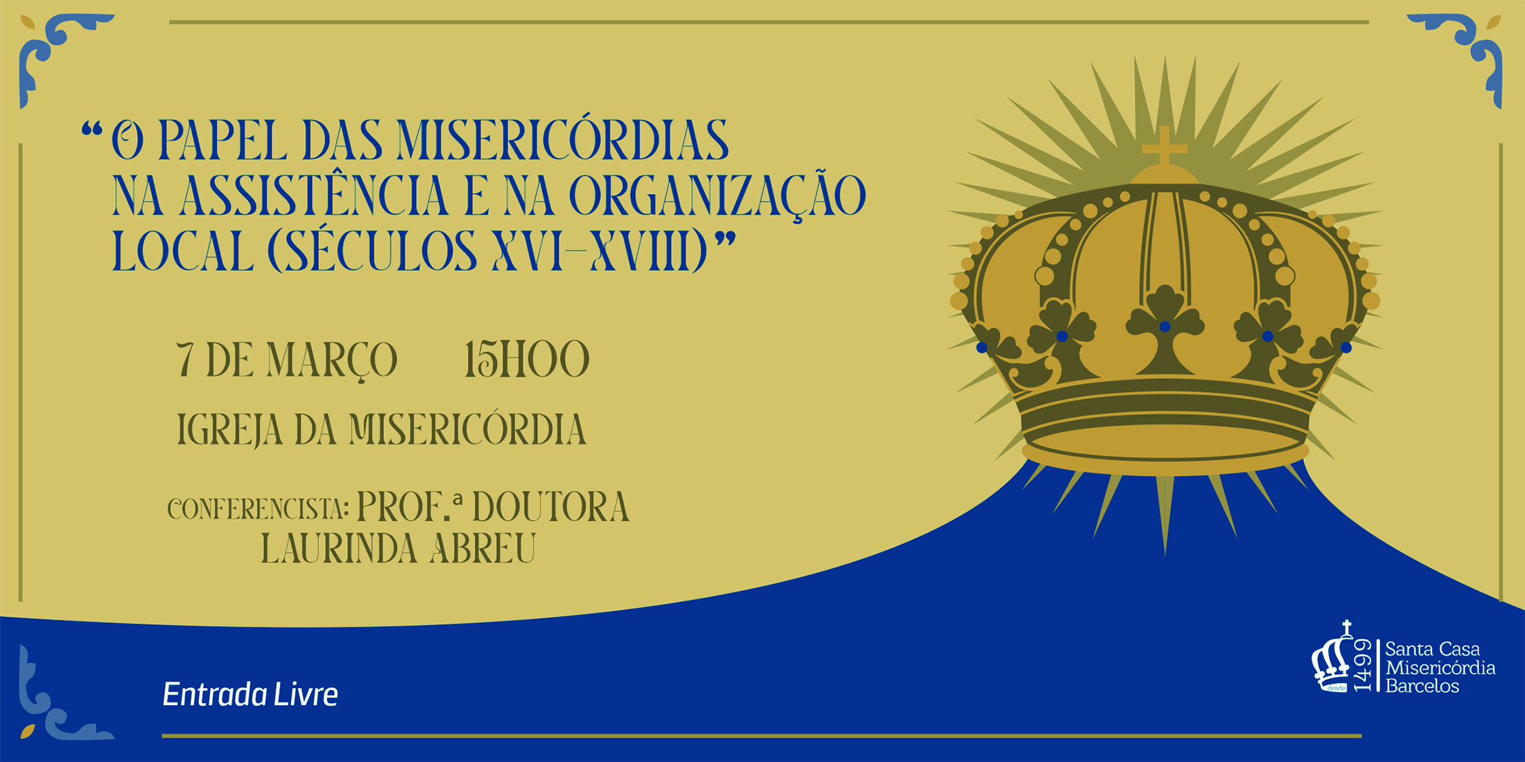 No âmbito do programa comemorativo do 526.º aniversário da Santa Casa da Misericórdia de Barcelos, esta sexta-feira, 7 de março, pelas 15h00, acolhemos uma conferência com Laurinda Abreu (Universidade de Évora), que permitirá conhecer "O papel das misericórdias na assistência e na organização local (séculos XVI-XVIII)".