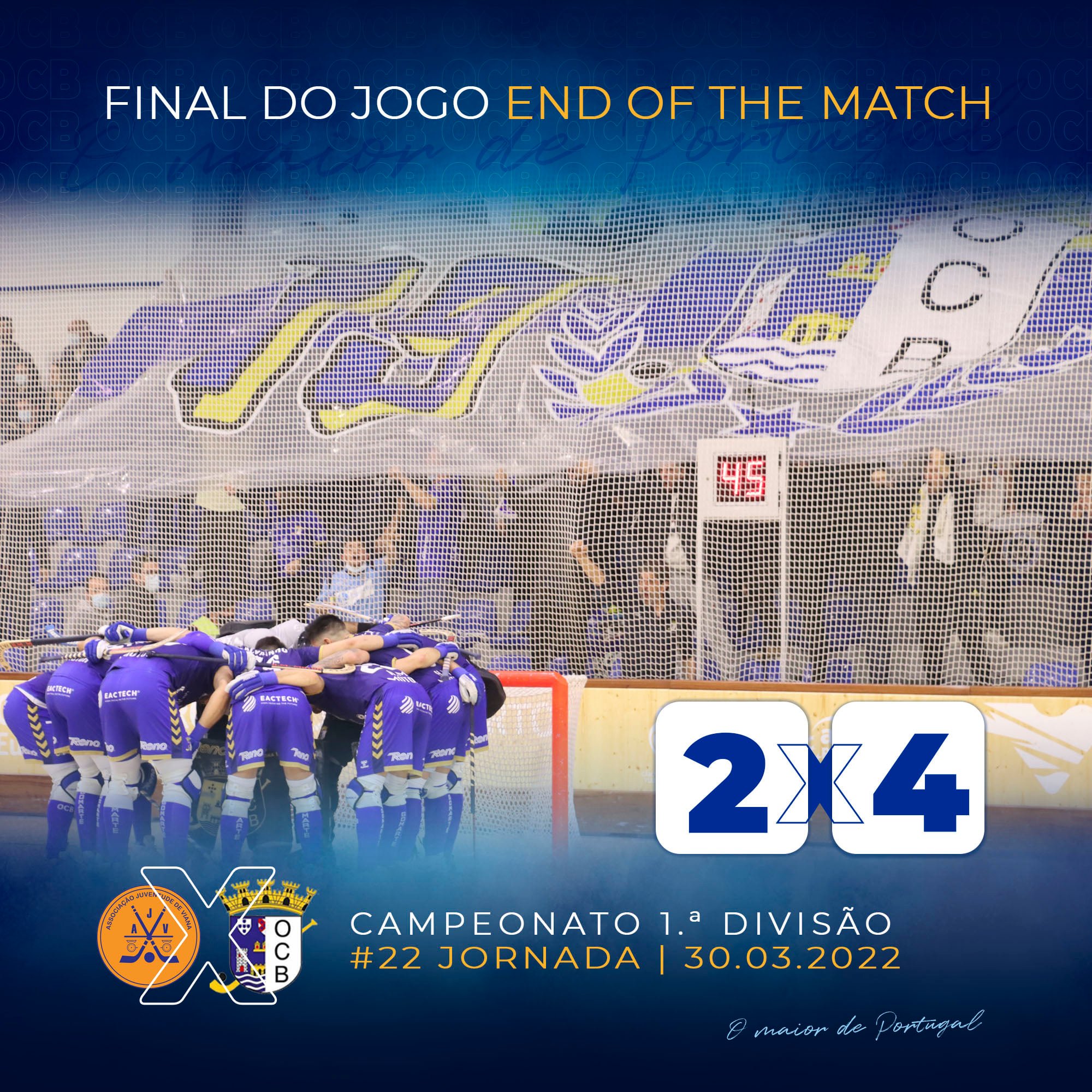 O OC Barcelos venceu o Juventude Viana, por 4-2, em partida da jornada 22 do campeonato de hóquei em patins.