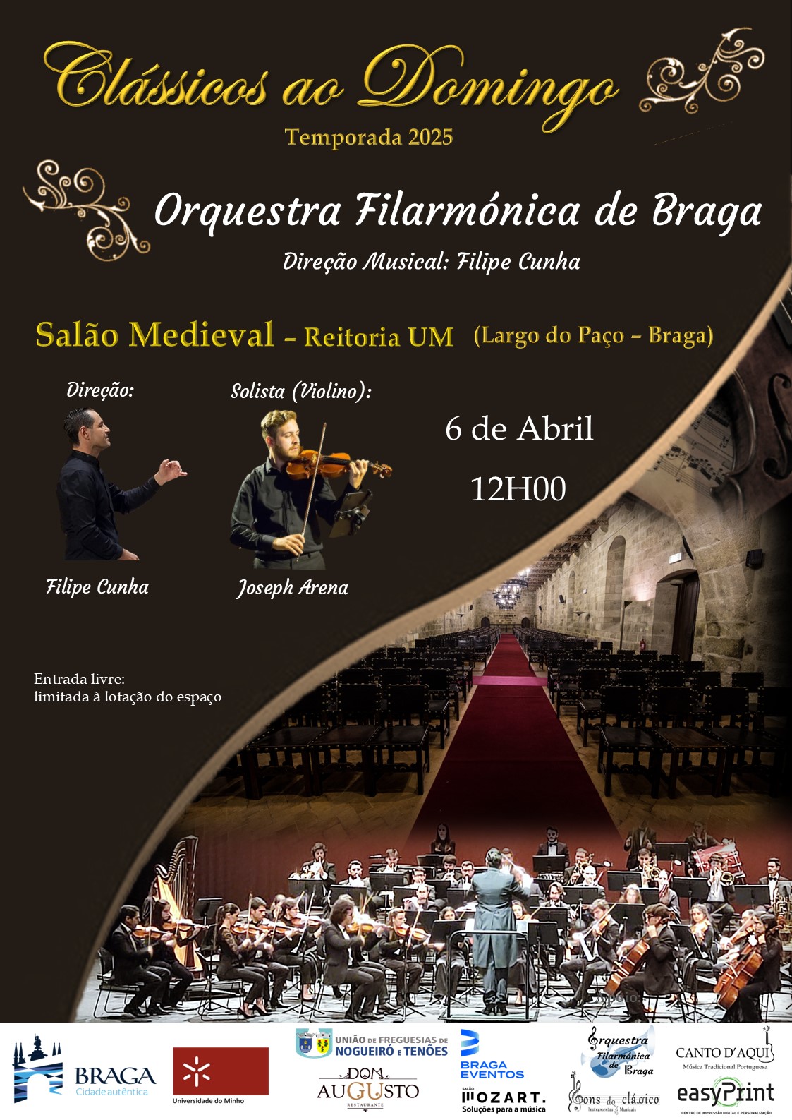 Dando seguimento à temporada 2025 do projeto "Clássicos ao Domingo" com mais um grande concerto a não perder no próximo Domingo, dia 06 de Abril, 2025, pelas 12H00 no Salão Medieval da Reitoria UM - Largo do Paço - Braga.