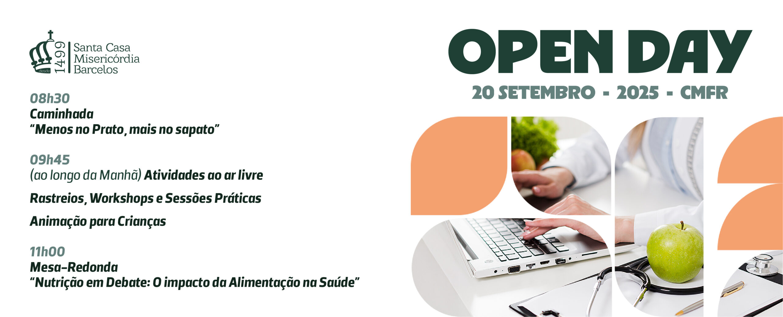 A partir das 08h30, e ao longo da manhã, serão realizadas várias atividades: caminhada, rastreios, workshops e uma mesa-redonda sobre "Nutrição em Debate: O impacto da Alimentação na Saúde", conforme programa anexo.