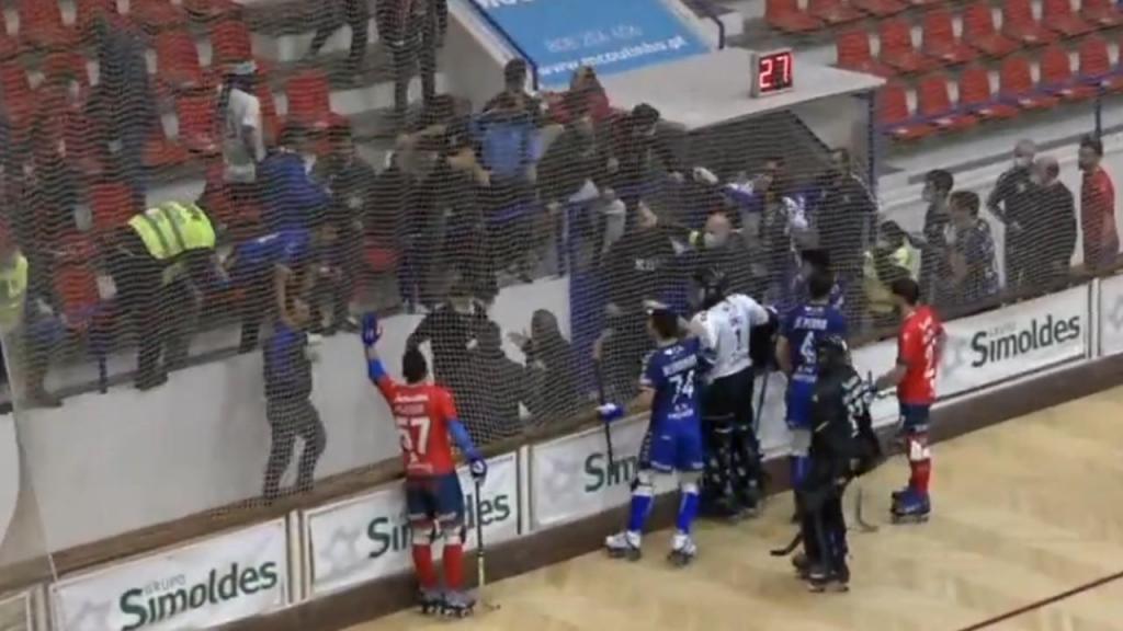 Pelas imagens da transmissão do jogo no Correio de Azeméis + Azeméis FM / TV é possível ver confrontos na bancada atrás da baliza do Óquei de Barcelos, com cenas de pancadaria entre adeptos, que chegam a derrubar um portão e a cair para a zona do nível do recinto, atrás das tabelas.