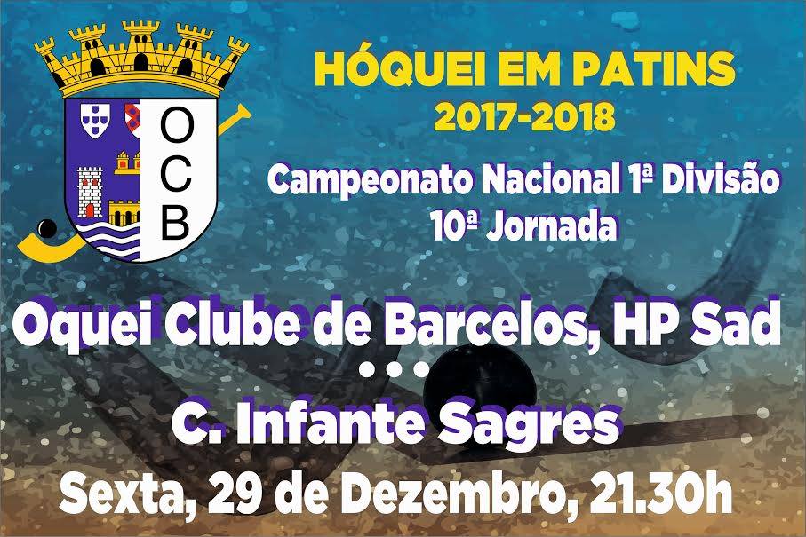 O Óquei de Barcelos recebe hoje o Infante de Sagres, em partida da 10.ª jornada da Primeira Divisão Nacional. O treinador Paulo Pereira quer fechar 2018 em beleza: "Todos desejamos acabar o ano com uma vitória. Esperamos um jogo difícil, independentemente da classificação que o Infante ocupa. Vamos fazer tudo por tudo para conseguir os três pontos. Respeitamos o adversário ao máximo. O Infante tem quatro jogadores que já jogaram no Barcelos e isso é uma motivação extra para esses atletas. Vamos ter algumas cautelas para não sermos surpreendidos".