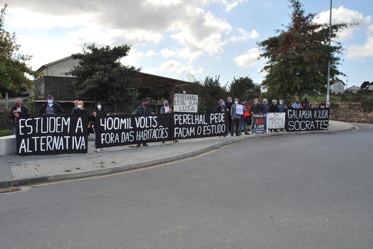 Cerca de três dezenas de habitantes de Perelhal, no concelho de Barcelos, manifestaram-se hoje junto ao Instituto Politécnico do Cávado e Ave (IPCA) contra a passagem pela freguesia de uma linha de muito alta tensão.