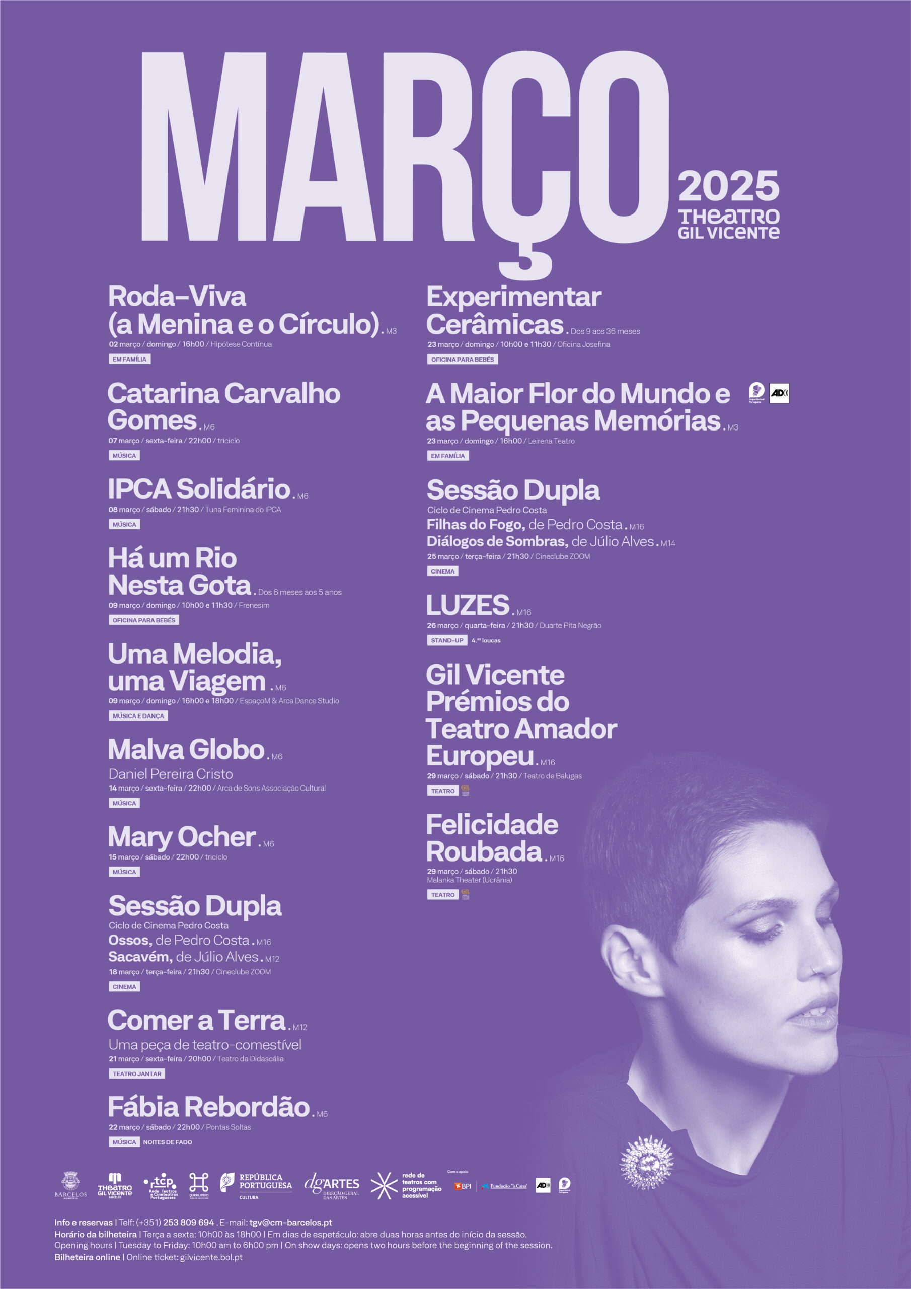 Noutro registo, dia 12, às 21h30, o espaço vicentino acolhe o espetáculo de música e dança pelo compositor, autor, coreógrafo e fadista Jonas, que vem a Barcelos apresentar o seu novo álbum "Maça d'Adão".